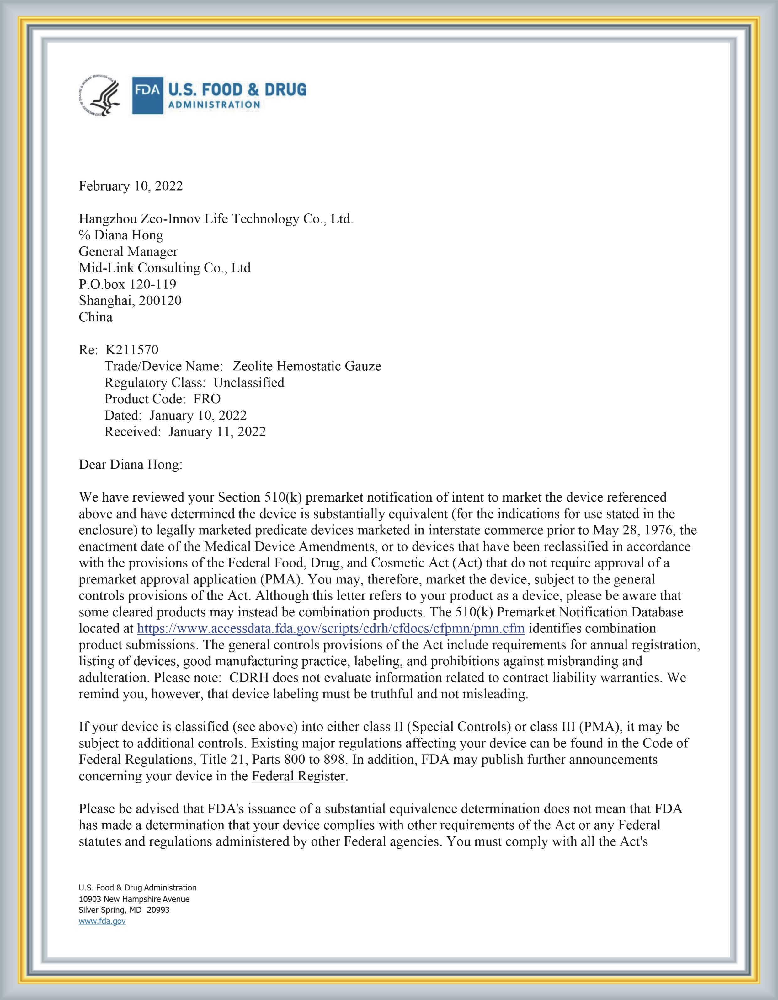 HANGZHOU ZEO-INNOV LIFE TECHNOLOGY CO., LTD was founded in 2009, located in Hangzhou, China. lt is a high-tech biomedical enterprise supported by Hangzhou Government. The company commits to the R&D. manufacturina and sale of Zeolite emeraencv hemostatic. protection and health care products. lt has strong R&D capabilities with a collaborative team of scientists in the fields of Chemistry, Material and Medical, and holds several invention patents and PCTs. Currently, the company has 1400 square meters GMP workshop, and the products were certified by U.S. FDA and China NMPA.