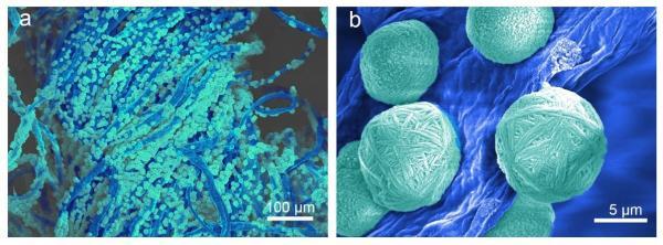 在一張放大了3200倍的掃描電子顯微鏡圖中,一根根普通的棉纖維上,均勻地分布著毛線球狀的納米沸石顆粒,這些牢牢結(jié)合在棉纖維上的顆粒正是快速殺滅新冠病毒的頂級(jí)殺手。
